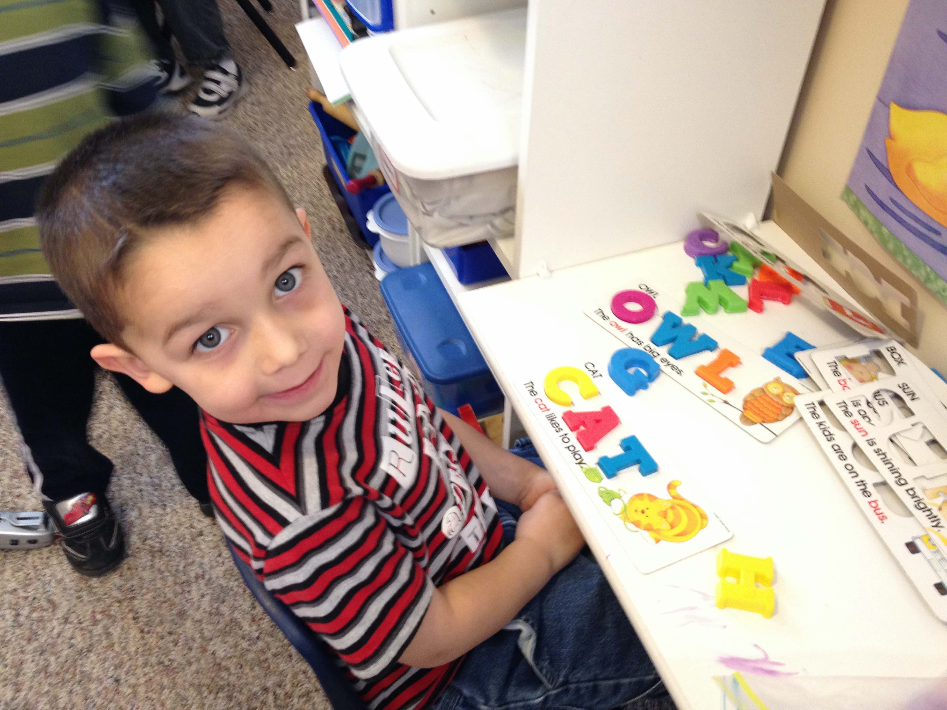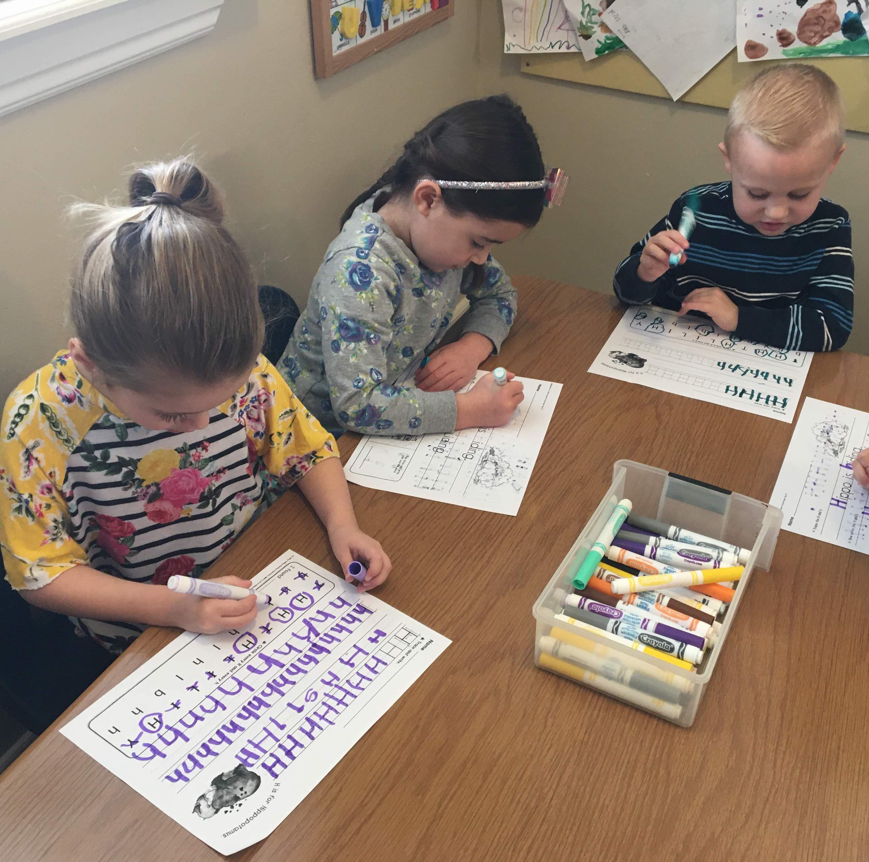 Each day your child will participate in learning the letter of the day, practicing its name, sound, and what words begin with that letter. Your child will practice handwriting and work on holding the pencil properly with strong fingers. After your child completes their work, they can choose one or more activities to participate in during free choice. This is child directed dramatic play, sensory experience or arts & crafts.